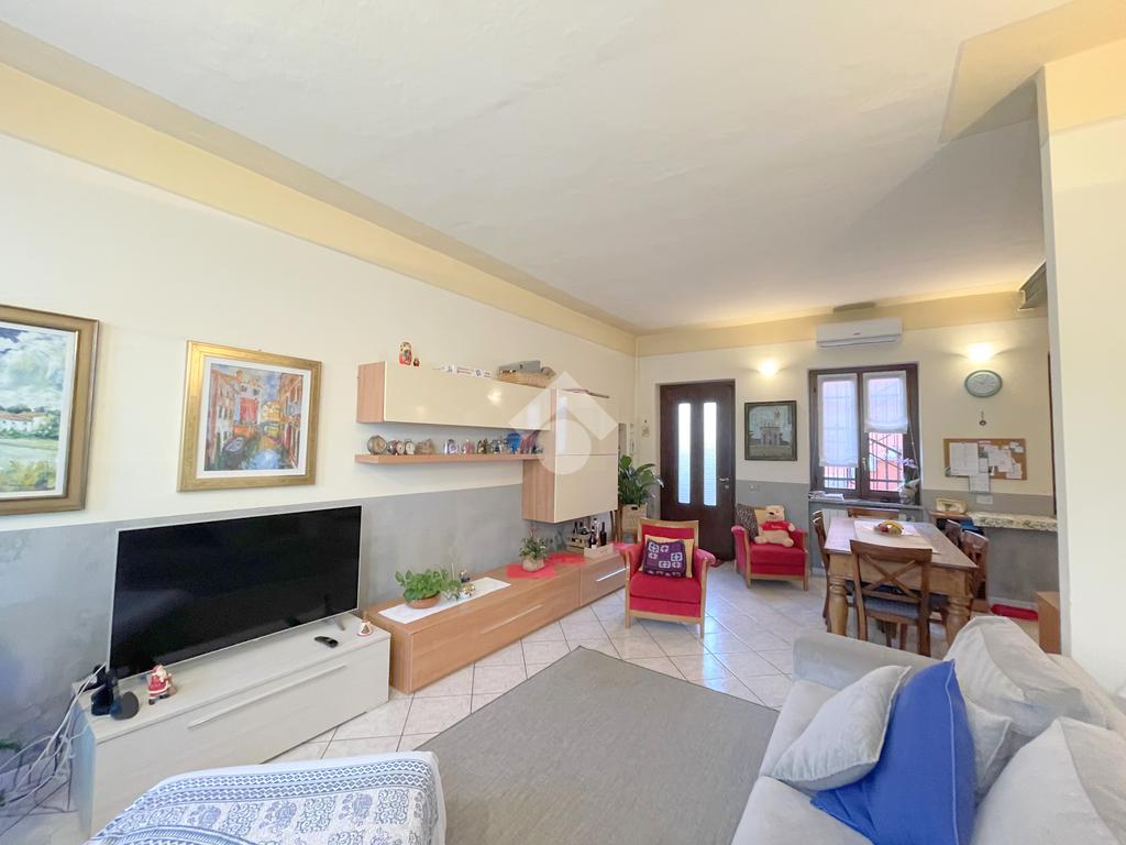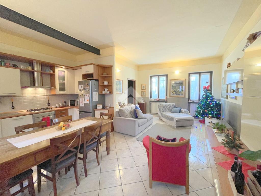 Recentemente ristrutturata, la casa dispone di un ampio terrazzo e un cortile di proprietà, un box e un posto auto scoperto.
