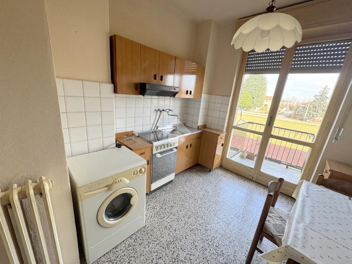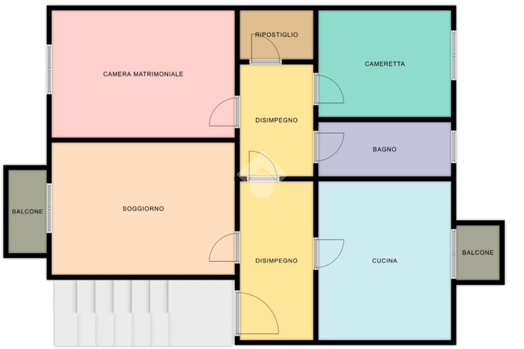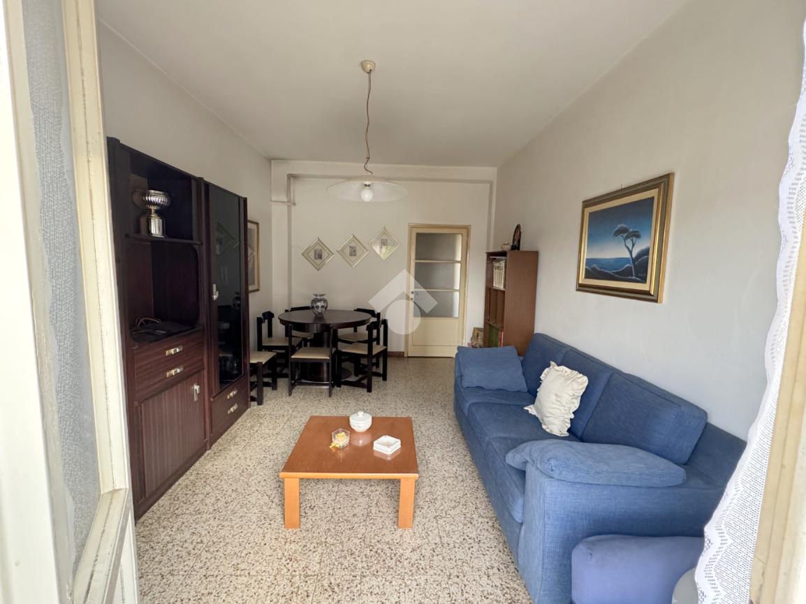 Varcata la porta d'ingresso, si viene accolti da un pratico disimpegno che conduce alla cucina abitabile con accesso al balcone panoramico e al soggiorno, ampio e luminoso, anch’esso dotato di sfogo esterno.